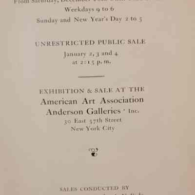 CAT, ART, 1934, NY. SALE #4109, COLLECTION OF FURNITURE, PAINTINGS & WORKS OF ART. AMERICAN ART ASSOC, ANDERSON GALLERIES. PARKE, BERNET, BADE, RUSSELL, AUCTS. 199 PP. ILLUS. 7 1/2" X 10 1/2"Created By