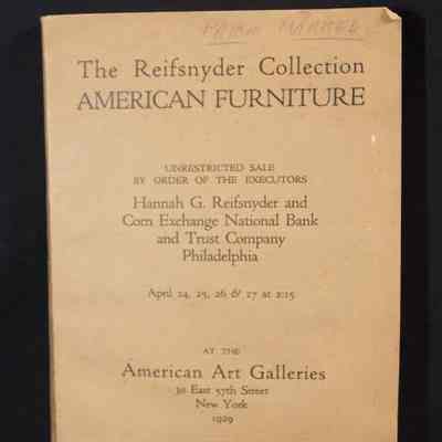 CAT, FURNITURE, 1929, NY. THE REIFSNYDER COLLECTION OF AMERICAN FURNITURE. AMERICAN ART GALLERIES. BERNET, PARKE, RUSSELL, AUCTS. PRICES MARKED. 157 PP. 6 1/4" X 9 1/4"Created By
