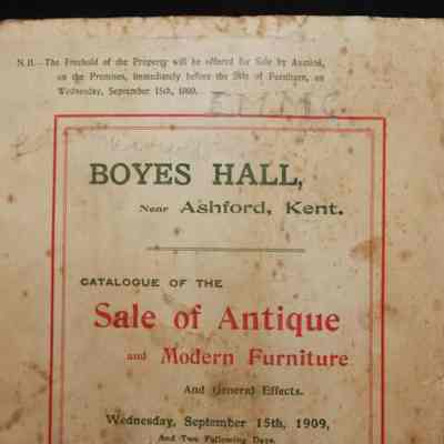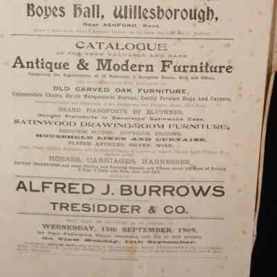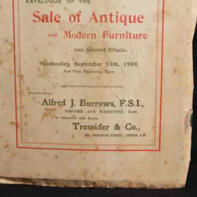 CAT, FURNITURE, 1909, LONDON. FREEHOLD PROPERTY, ANTIQUE AND MODERN FURNITURE. ALFRED BURROWS, TRESSIDER & CO, AUCTIONEERS. SOME PRICES MARKED, 44 PP. 7 1/2" X 10 1/2"Created By