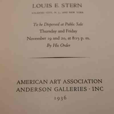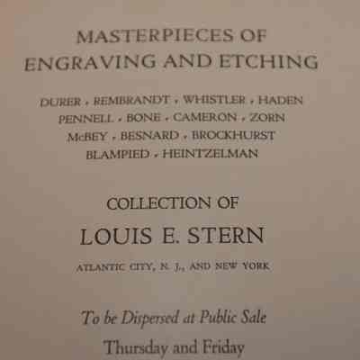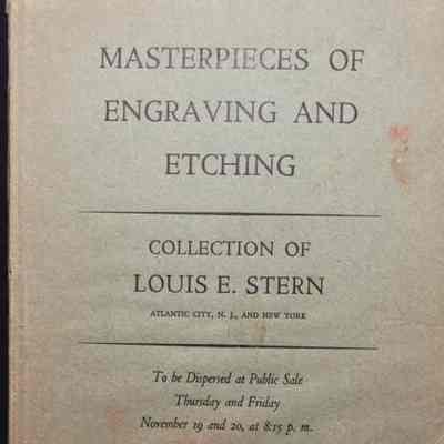 CAT, ART, 1936, NY. BOUND BOOK, HARDCOVER. MASTERPIECES OF ENGRAVING AND ETCHING, COLLECTION OF LOUIS STERN. AMERICAN ART ASSOC, ANDERSON GALLERIES. PARKE, BERNET, RUSSELL, AUCTIONEERS. INCL WORKS OF DURER, REMBRANDT, WHISTLER, HADEN, PENNELL, BONE, CAMERON, ZORN, MCBEY, BESNARD, BROCKHURST, BLAMPIED, HEINTZELMAN. 146 PP. 7 1/2" X 10 3/4"Created By