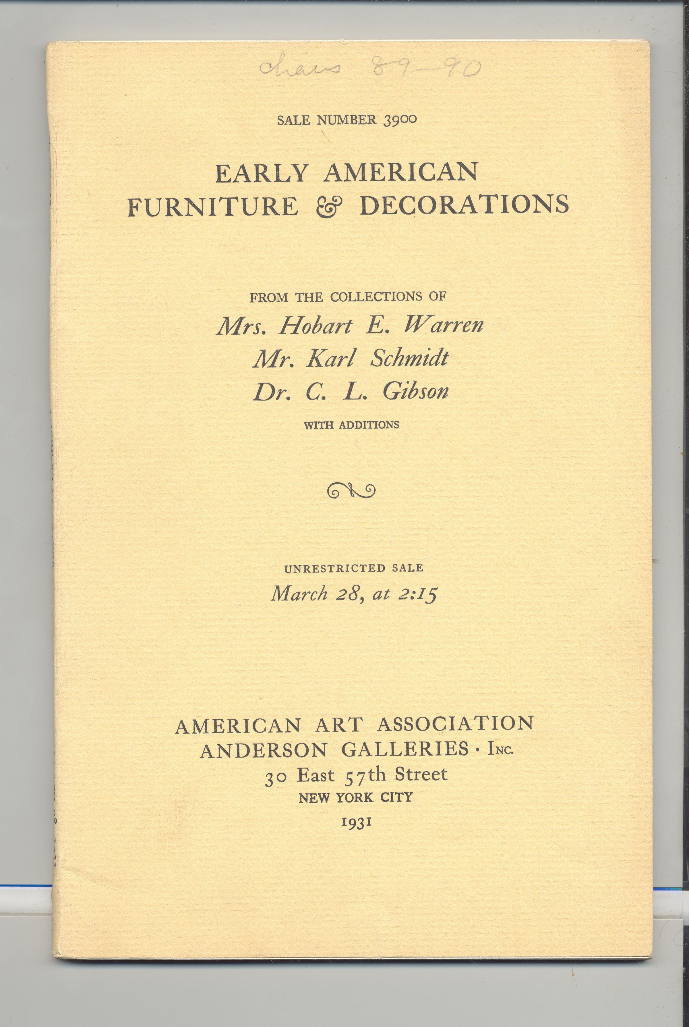 CAT, ART, 1931, NY. EARLY AMERICAN FURNITURE & DECOR. AMERICAN ART ASSOC, ANDERSON GALLERIES. BERNET, PARKE, BADE & RUSSELL, AUCTS. B/W PHOTOS, 58 PP. 6" X 9 1/4"Created By