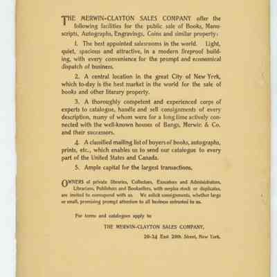CAT, BOOKS, 1906, NY. A COLLECTION OF LINCOLN LITERATURE. MERWIN-CLAYTON SALES CO. PRICED, 25 PP, 6 1/4" X 9 1/2"Created By