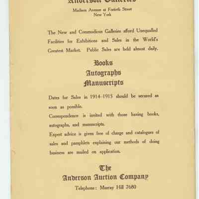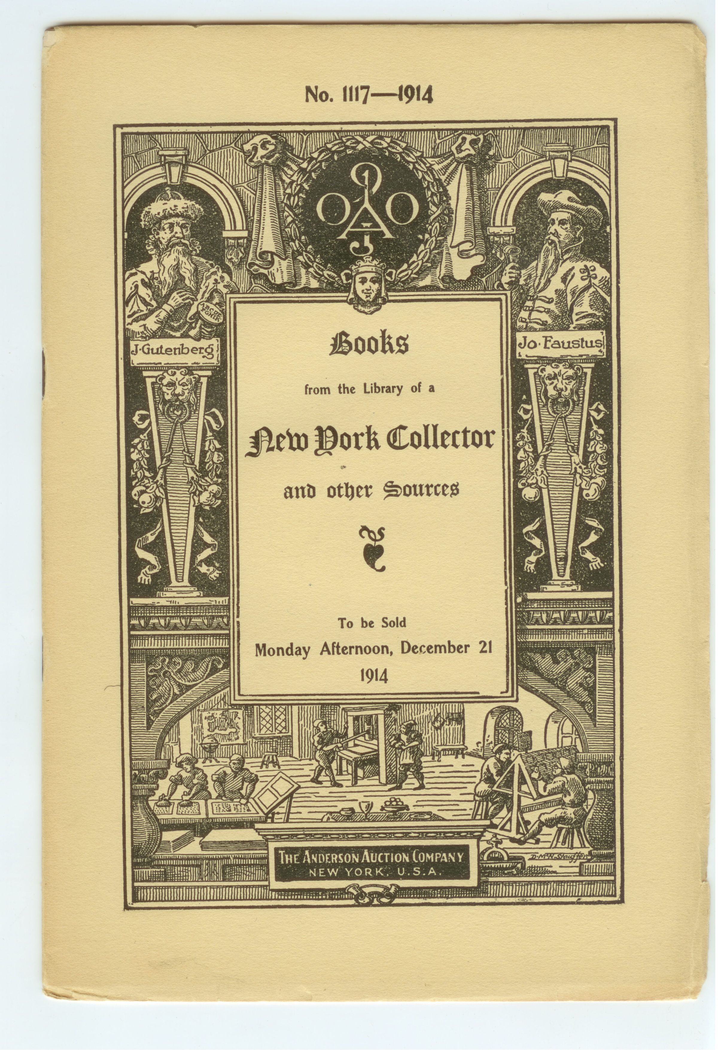CAT, BOOKS, 1914, NY. SALE 1117, 28 PP. INCL INVOICE FROM ANDERSON GALLERIES. 6 1/4" X 9"
