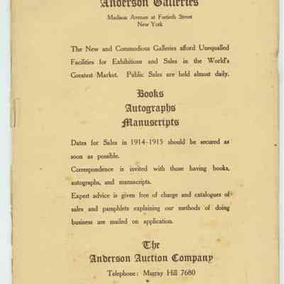 CAT, BOOKS, 1914, NY. SALE 1096, LIBRARY OF THE LATE WILLIAM H. HALDANE. INVOICES FROM ANDERSON GALLERIES. 36 PP. 6 1/4" X 9 1/4"Created By