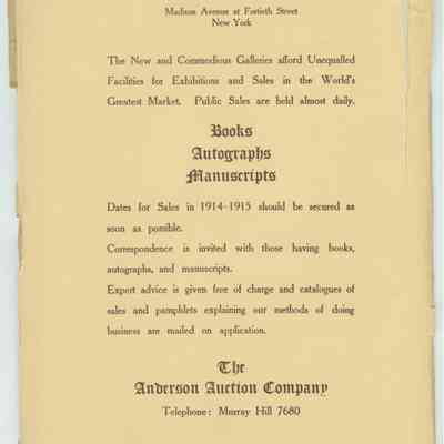 CAT, BOOKS, 1914, NY. SALE 1099, LIBRARY OF THE LATE JAMES COCKCROFT. ANDERSON AUCTION CO. 2 INVOICES INCL. 49 PP. 6 1/4" X 9 1/4"Created By