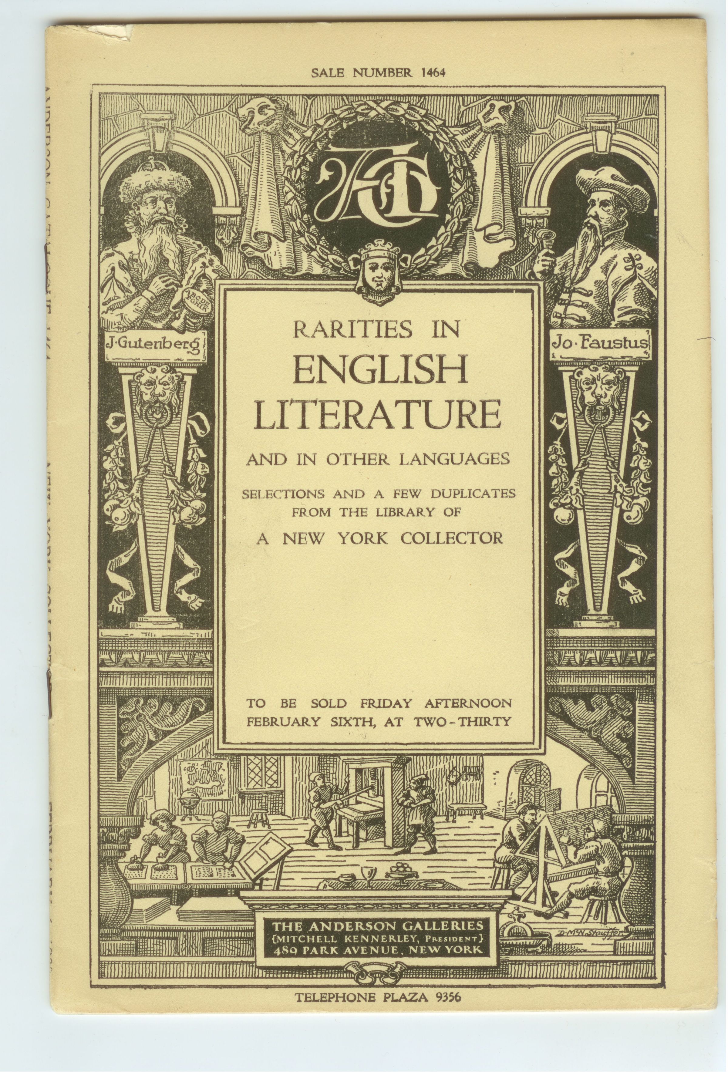 CAT, BOOKS, 1920, NY. SALE 1464, RARITIES IN ENGLISH LITERATURE AND IN OTHER LANGUAGES. ANDERSON GALLERIES. 28 PP, 6" X 9"Created By