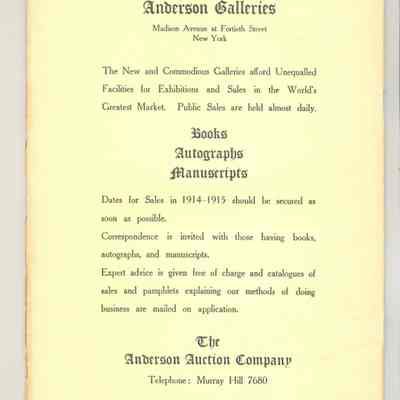 CAT, BOOKS, 1914, NY. SALE 1097. COLLECTION OF A.S. CLARK IN PEEKSKILL, NY. ANDERSON AUCTION CO. INVOICE INCL, 39 PP. 6 1/4" X 9 1/4"Created By
