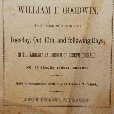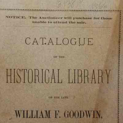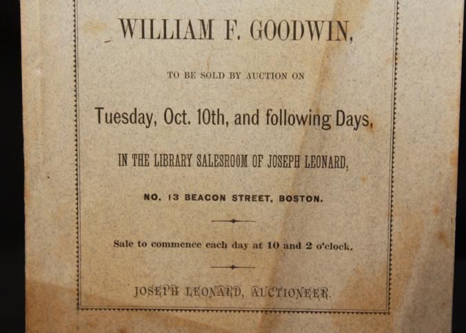 CAT, BOOKS, 1876, MA. HISTORICAL LIBRARY OF WM. GOODWIN. JOSEPH LEONARD, AUCT. 187 PP, 5 3/4" X 8 1/2"Created By