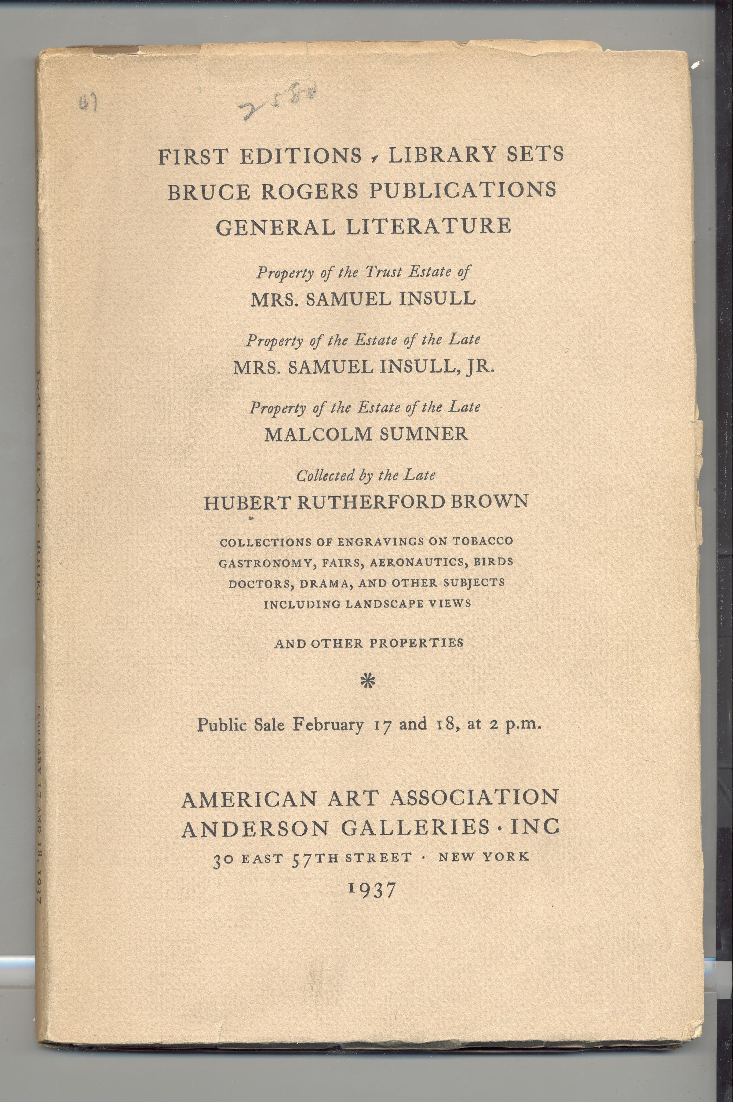 CAT, BOOKS, 1937, NY. FIRST EDITIONS, LIBRARY SETS, BRUCE ROGERS PUB, GEN LIT. AMERICAN ART ASSOC. 128 PP, PRICED. 6 1/4" X 9 1/2"Created By