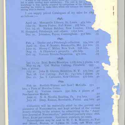 CAT, COINS, 1899, NY. GREEK AND ROMAN GOLD, SILVER, AND COPPER COINS. CATALOGUED BY LYMAN LOW. PRICED. 44 PP. 5 3/4" X 9"Created By