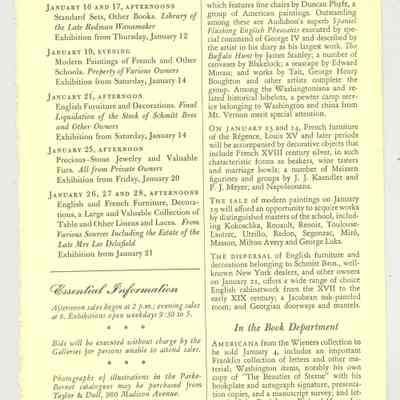 DOC, AUCTION CALENDAR, NY, 1950. PUBLIC AUCTION SALE DATES IN JANUARY. ONE PAGE, PARKE-BERNET GALLERIES BULLETIN, 6" X 9 1/4"Created By