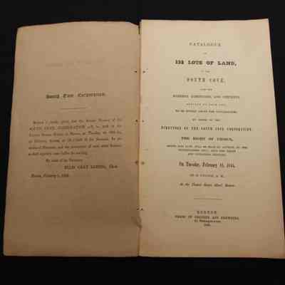 CAT, LAND, 1845, MA. 132 LOTS OF LAND IN THE SOUTH COVE. 8 PP, 5 1/2" X 9 1/4", MAP INCL 19 1/4" X 15 1/2"Created By