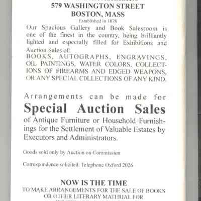 CAT, FIREARMS, 1911, MA. MARK FIELD COLLECTION OF FIREARMS & EDGED WEAPONS. C.F. LIBBIE & CO, AUCTS. PHOTOGRAPHED, 96 PP. 5 1/2" X 8 1/2"Created By