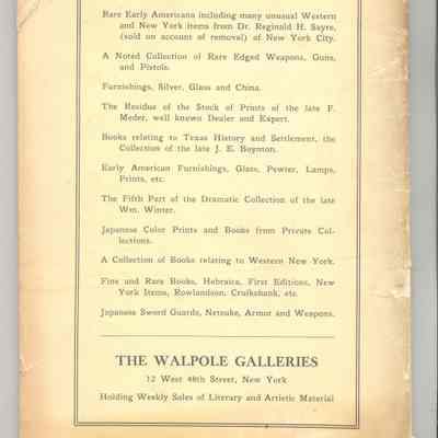CAT, WEAPONS, 1925, NY. FIREARMS, WEAPONS, BOOKS. THE WALPOLE GALLERIES, WALTER SCOTT, AUCTIONEER. ILLUS. 72 PP. 6" X 9"Created By