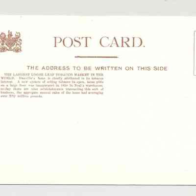 PSTCD, TOBACCO, VA. DANVILLE, VA, LARGEST LOOSELEAF TOBACCO MARKET IN THE WORLD. COLOR PRINT