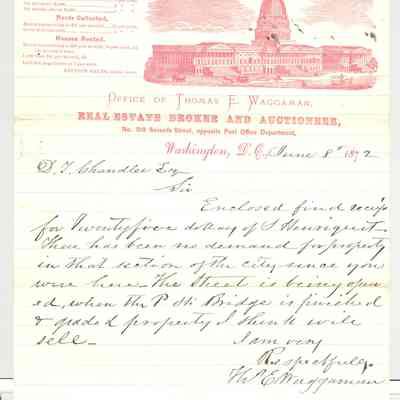 DOCS, LETTERHEAD, 1872, WASHINGTON DC. OFFICE OF THOMAS E. WAGGAMAN, REAL ESTATE BROKER AND AUCTIONEER.Created By