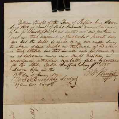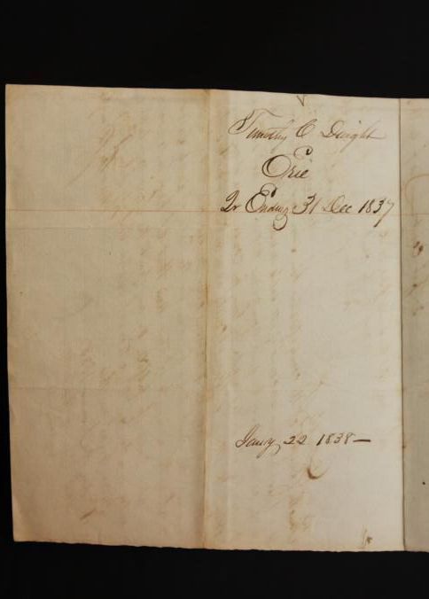 DOC, LETTER, 1837, ERIE COUNTY, PA. ACCOUNT SETTLEMENT, SIGNED TIMOTHY DWIGHT, 8" X 13"