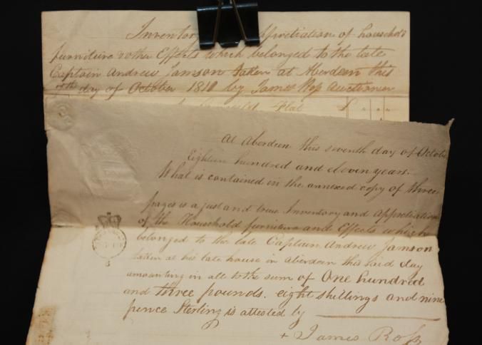 DOC, ESTATE SETTLEMENT, 1811, ABERDEEN. JAMES ROFS(?) 3 PP.