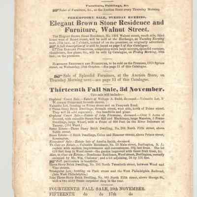 CAT, REAL ESTATE, 1857, PA. THOMAS & SONS, AUCTS. 12 PP. 6" X 9 1/2"