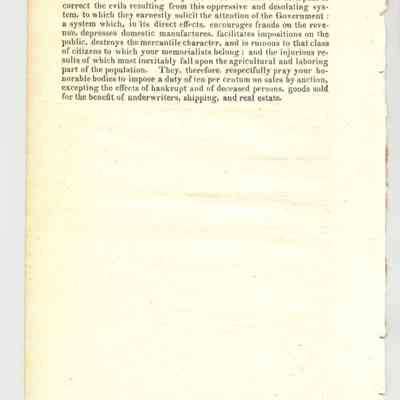 DOC, POLITICAL, 1828, NY. MEMORIAL OF MERCHANTS, TRADERS, ETC. OF THE CITY OF NY, PRAYING THAT A DUTY OF 10 % MAY BE IMPOSED BY LAW UPON SALES AT AUCTION. 2 PP. 5 1/2" X 8 3/4"Created By