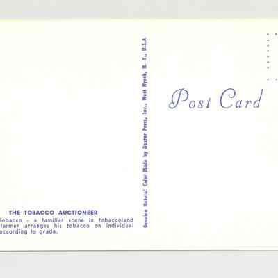PSTCD, TOBACCO. "A FAMILIAR SCENE IN TOBACCOLAND-EACH FARMER ARRANGES HIS TOBACCO ON INDIVIDUAL BASKETS ACCORDING TO GRADE. COLOR PRINTCreated By