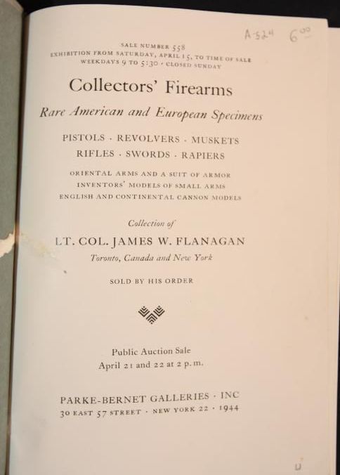 CAT, WEAPONS, 1944, NY. IMPORTANT AMERICAN AND EUROPEAN COLLECTOR'S FIREARMS. PARKE-BERNET GALLERIES, INC. B/W PHOTOS, 82 PP. 6 1/4" X 9 1/4"Created By