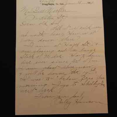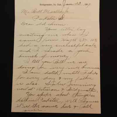 DOC, 1907, SD. PERSONAL LETTERS AND ENVELOPE W/LETTERHEAD. C.P. HANSON, AUCTIONEER.