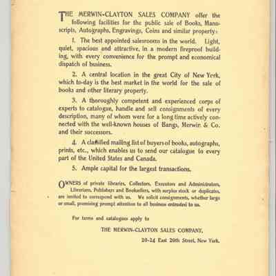 CAT, HISTORICAL LITERATURE, 1906, NY. A COLLECTION OF LINCOLN LITERATURE, MERWIN-CLAYTON SALES CO. PRICED. 25 PP. 6 1/2" X 9 1/2"Created By