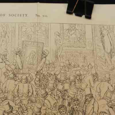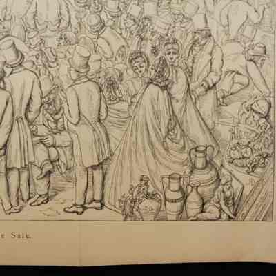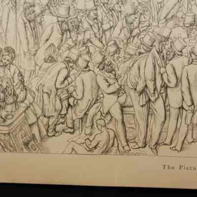 ENGRAVING, "THE PICTURE SALE" FROM BIRD'S-EYE VIEW OF SOCIETY, NO. VII. CROWD AT ART AUCTION, 13" X 8 1/2"Created By