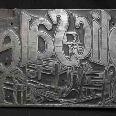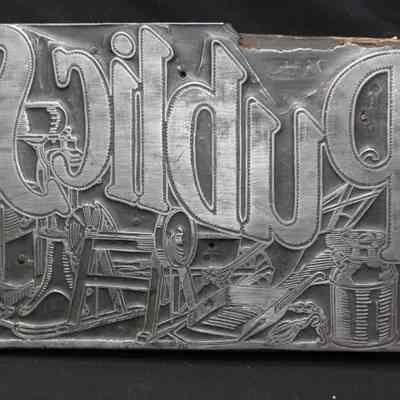 PRINTING BLOCK, WOOD AND METAL. "PUBLIC SALE" 9" X 5 1/2" X 1"