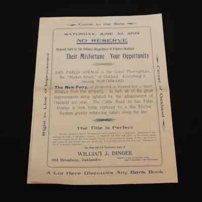 FLYER, REAL ESTATE, 1899, CA. 50 SUBDIVISIONS, MAP, NO RESERVE. WILLIAM DINGEE. 9 1/2" X 12"