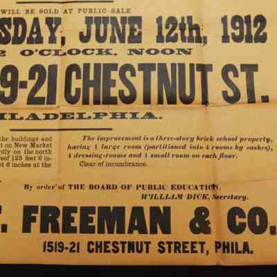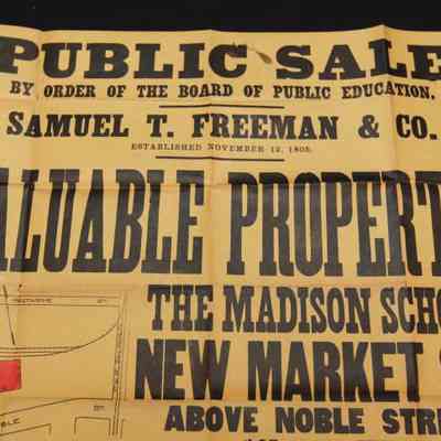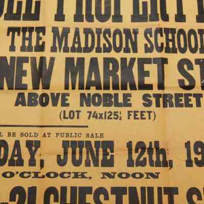 BROADSIDE, 1912, REAL ESTATE, PA. SAMUEL FREEMAN & CO, AUCTIONEERS. VALUABLE PROPERTY THE MADISON SCHOOL, NEW MARKET ST. 24" X 20"Created By