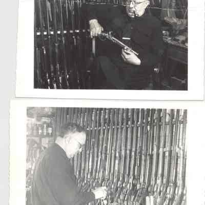 THREE PHOTOS, MAN AND GUNS - ONE 8 X 10 PRINTED ON BACK "1945, PHOTO BY H.L. PHILLIPS, WATERTOWN, MA.Created By