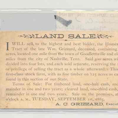 PSTCD, LAND, 1885, TN. A.C. GRIZZARD, EXECUTOR.