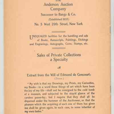 CAT, BOOKS, 1907, NY. RELATING TO ABRAHAM LINCOLN AND NYC, GEORGE MORSE, AUCTIONEER. PRICED, 19 PP. 6" X 9"Created By