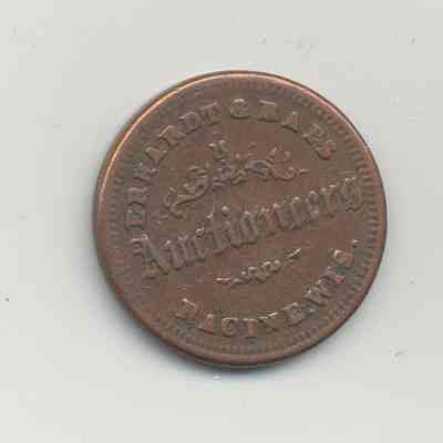 ADVERTISING COIN, 1865, WI. ERHARDT & RAPS, AUCTIONEERS. 3/4" DIAMETER