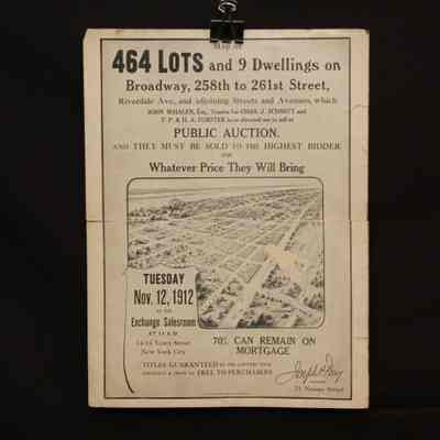ADVERTISING, SHEET MUSIC "WHEN BROADWAY WAS A PASTURE", 1912, NY. REAL ESTATE AUCTION, 464 LOTS AND 9 DWELLINGS ON BROADWAY. JOSEPH DAY, AUCTIONEER. 10 3/4' X 13 1/4"Created By
