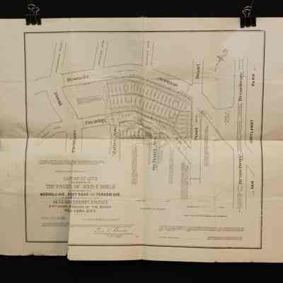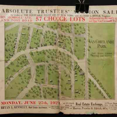 MAP & PARTICULARS, REAL ESTATE, 1921, NY. ABSOLUTE TRUSTEES' AUCTION SALE, 57 CHOICE LOTS, BRYAN KENNELLY, AUCTIONEER. 12 1/2" X 9 1/2" FOLDEDCreated By