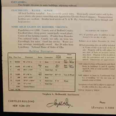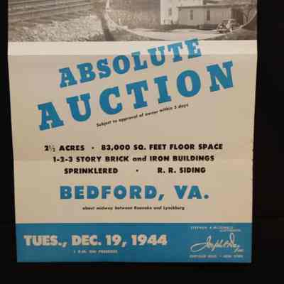 FLYER, 1944, REAL ESTATE, VA. BY ORDER OF CONTINENTAL CAN CO., ABSOLUTE AUCTION. JOSEPH DAY, AUCTIONEERS. MAP, TERMS, STEPHEN MCDONALD, AUCTIONEER. 9" X 15"Created By