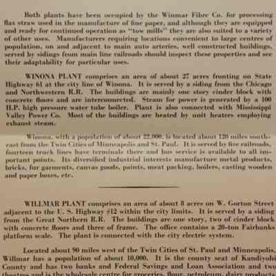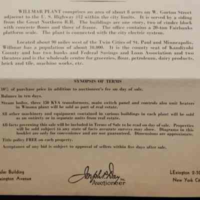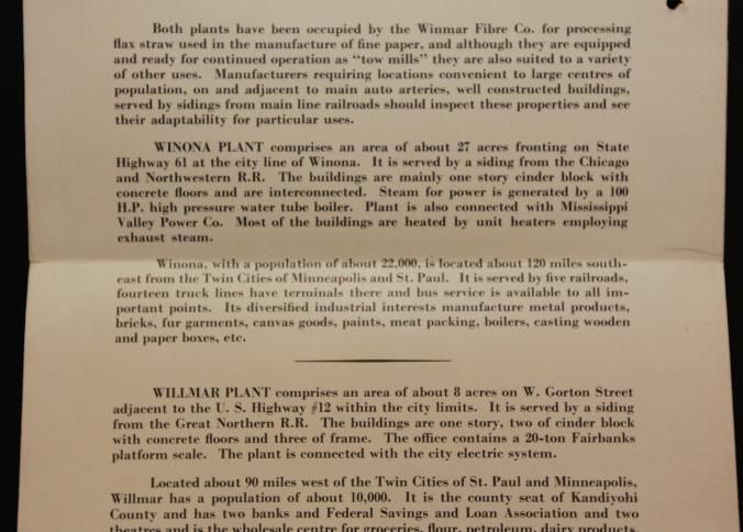 FLYER, 1944, REAL ESTATE, MN. 2 PLANTS OF FORMER WINMAR FIBRE CO. ABSOLUTE AUCTION. MAPS, B/W PHOTOS, JOSEPH DAY, AUCTIONEERS. 9" X 11 1/2" FOLDED IN HALF.Created By