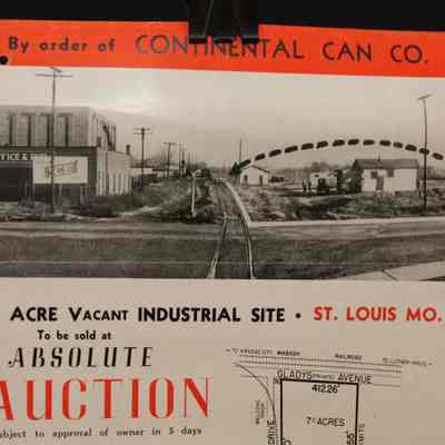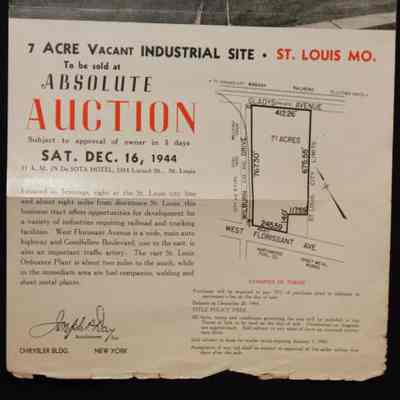 FLYER, REAL ESTATE, 1944, MO. CONTINENTAL CAN CO. 7 ACRE VACANT INDUSTRIAL SITE, ABSOLUTE AUCTION. JOSEPH P. DAY, AUCTIONEERS. PHOTO, MAP, TERMS. 9" X 12"Created By