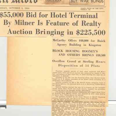 DOC, LETTER, 1944, PA. REPORT OF PRICES OF SOLD PROPERTIES IN WILKES-BARRE SALE. WITH NEWS CLIPPING QUOTING PRICES. 2 PP. 7 1/2" X 9 1/2"Created By