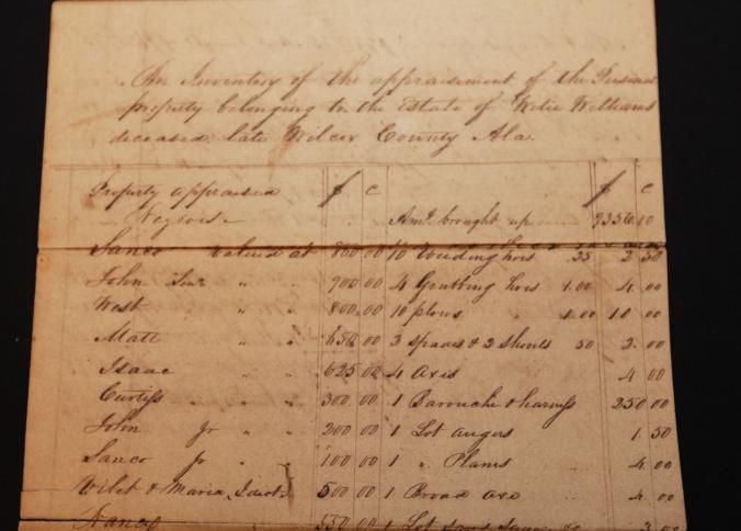 DOC, 1846, AL, ESTATE SETTLEMENT. SLAVES, HOUSEHOLD. 7 3/4" X 12 1/2" FOLDED