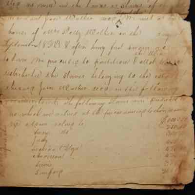 DOC, SLAVES, 1828, ESTATE SETTLEMENT. 7 3/4" X 12 1/2"
