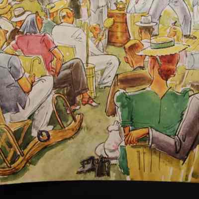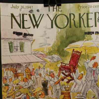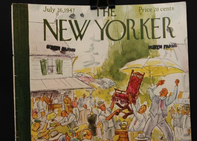MAG COVER, THE NEW YORKER, JULY 1947, COLOR ILLUS OF ESTATE SALE. 8 1/2" X 11 1/2"