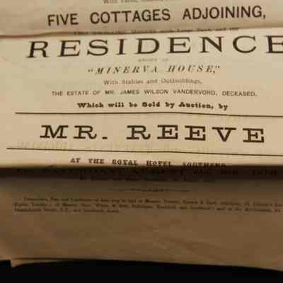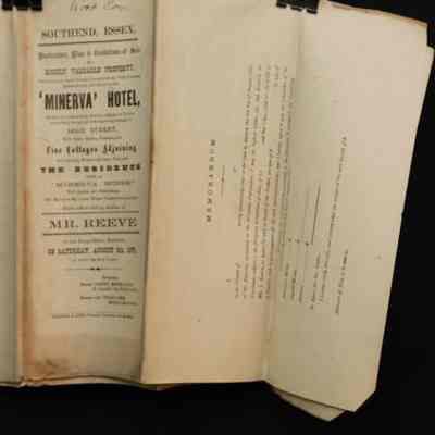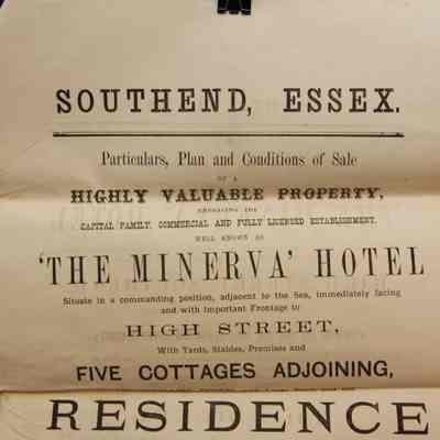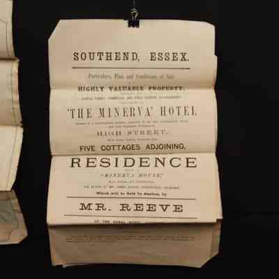 PARTICULARS, 1879, SOUTHEND, ESSEX. "THE MINERVA" HOTEL. MR. REEVE, AUCTIONEER. 6 PP AND MAP INCL. 11" X 17 1/4"Created By