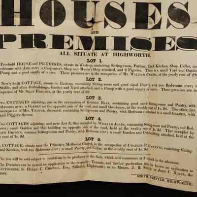 BROADSIDE & TERMS, FREEHOLD PROPERTY, HIGHWORTH. 1868. MR. J.C. SALMON, AUCTIONEER. 17" X 22 1/4"Created By