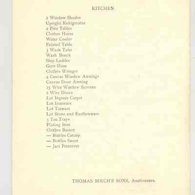 CAT, ESTATE SALE, 1890, PA. ENTIRE HOUSEHOLD FURNITURE CATALOGUE, THOMAS BIRCH'S SONS, AUCTIONEERS. 10 PP. 5 3/4" X 8 3/4"Created By