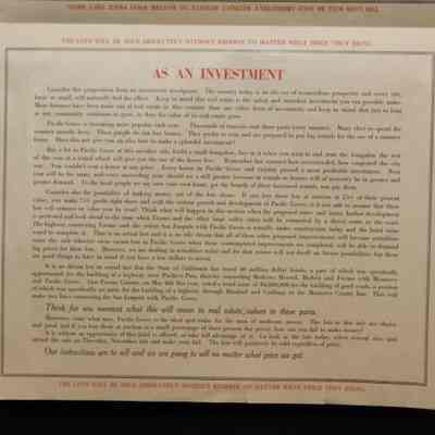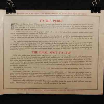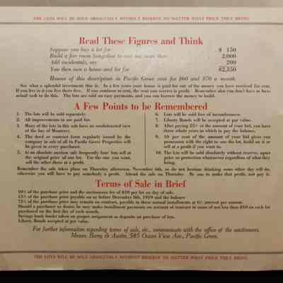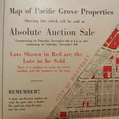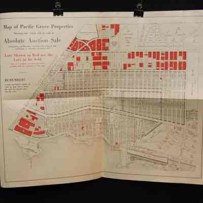 BROCHURE, REAL ESTATE, PACIFIC GROVE. 300 HOME SITES, AT ABSOLUTE UNRESERVED AUCTION. BARRY & AUSTIN, AUCTIONEERS. 28" X 21"Created By