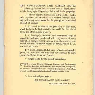 CAT, BOOKS, 1906, NY. A COLLECTION OF LINCOLN LITERATURE. MERWIN-CLAYTON SALES CO. PRICED, 25 PP, 6 1/4" X 9 1/2"Created By
